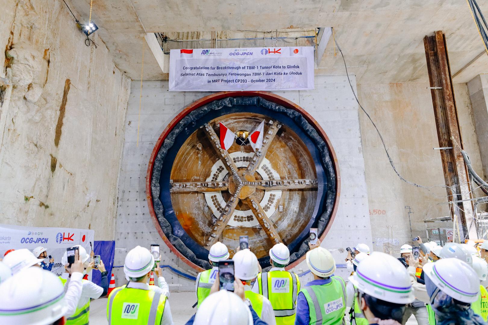 Pada pukul 14.35 WIB, suara sirine menggema di kedalaman sekitar 18 meter di bawah tanah. Bersamaan dengan itu, bendera Indonesia dan Jepang dikibarkan di atas mesin bor terowongan. Momen ini menandai keberhasilan tunnel boring machine 1 dalam menyelesaikan pembangunan terowongan arah selatan dari Stasiun Kota menuju Stasiun Glodok. Suara tepuk tangan dari para pekerja dan tamu undangan semakin menambah semarak perayaan peristiwa bersejarah ini.